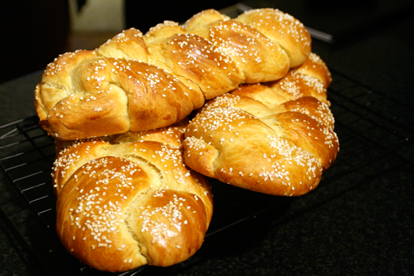 8. Set the braided loaves in a warm place to rise, until they double in size again. Then brush the loaves with the beaten egg and sprinkle with the sesame or poppy seeds.