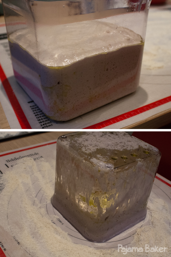 4. Quickly flip the container upside down onto a heavily floured work surface to turn out your dough. Leave it to rest for another 30 minutes. In the meantime, preheat your oven to 465ºF (240ºC).
