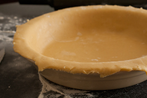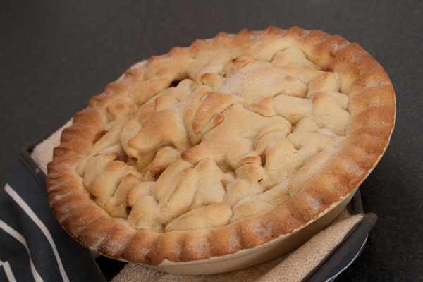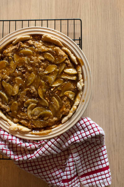 The recipe calls for using a cast-iron skillet (which I don’t have). I used a Le Creuset ceramic pie dish and it seemed to work alright. (Although, now I have something new to add to my Amazon list for Christmas!) It also calls for using refrigerated pie crust, but I just made up a batch of shortcrust pastry.
