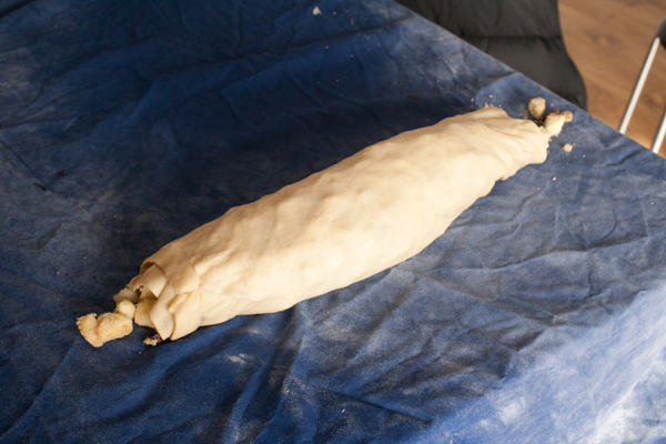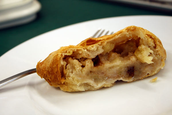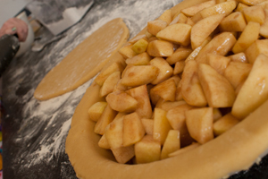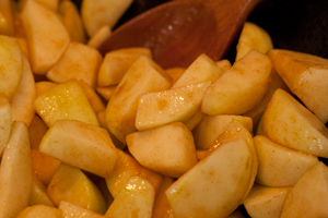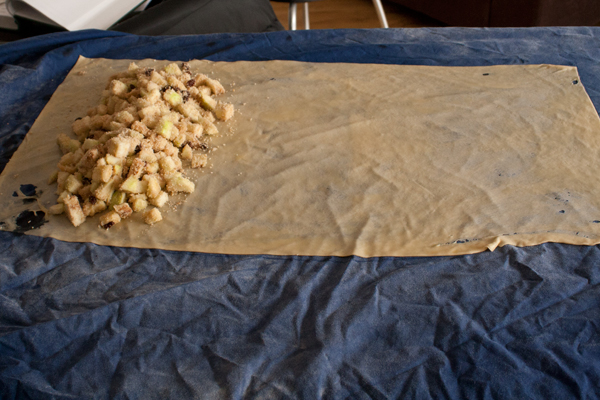 1. First, peel the apples, and cut into 1/4-inch-thick wedges. You’ll want to work quickly so that they don’t start to brown. Toss the apple slices with 2 Tablespoons of the flour and 1/2 cup of the brown sugar in a large bowl. Melt 1/4 cup (57.5 grams) butter in a large skillet over medium-high heat; add apple mixture, and sauté 15 minutes or until apples are tender and liquid is thickened. Remove from heat; cool completely (about 30 minutes).