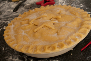4. Place pie on lower oven rack, and bake for 1 hour and 10 minutes to 1 hour and 20 minutes or until a wooden pick inserted in the center comes out with a few moist crumbs. Remove from the oven and allow the pie to cool completely.